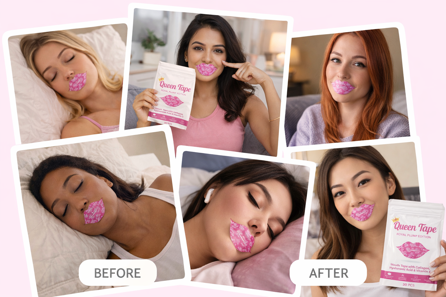 Queen Tape is infused with collagen and nourishing ingredients designed to support softer, smoother-looking lips while you sleep. The collagen-infused surface helps lock in moisture overnight, reducing dryness and allowing lips to feel more hydrated by morning